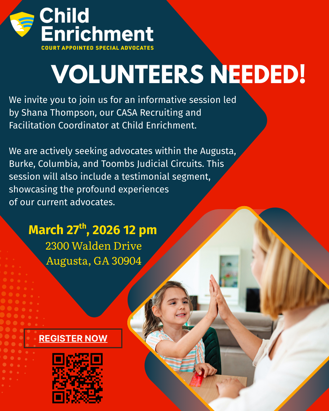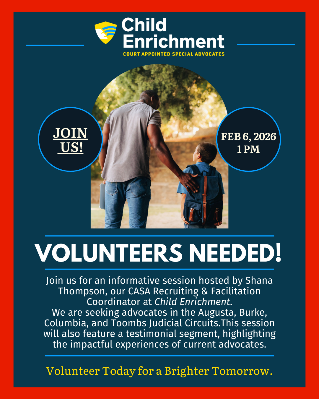 Child Enrichment's CASA Program is nationally and state-accredited. Our program trains community volunteers who are appointed by a judge to advocate for the best interests of abused or neglected children involved in juvenile court deprivation proceedings.